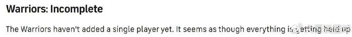 由于勇士队始终没有解决库明加的去留问题,导致所有操作都被卡住,只能耐心等待勇士与库明加之间的博弈结束才能确定最终的评分。